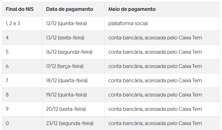 As famílias de final de NIS 1, 2 e 3 receberão a parcela de dezembro na plataforma social do Auxílio Gás, mesmo aquelas que normalmente recebem os valores em conta bancária. Caso não saquem até 26 de dezembro, as parcelas serão enviadas às contas bancárias, que permitem a movimentação pelo aplicativo Caixa Tem e pelo cartão de débito do Bolsa Família