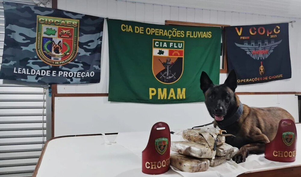 Um cão farejador da Polícia Militar do Amazonas (PMAM) foi fundamental na apreensão de seis quilos de entorpecentes na Base Fluvial Tiradentes, em Coari (a 363 quilômetros de Manaus), na quinta-feira (26/02). A ação faz parte da operação Protetor das Fronteiras/Fronteira Mais Segura, coordenada pela Secretaria de Segurança Pública do Amazonas (SSP-AM).