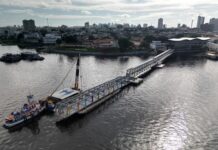 Píer turístico do ‘Nosso Centro’ ganha forma com chegada da ponte e atracadouro principal