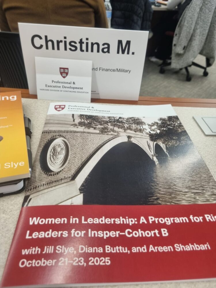 A capitão Christina Martins, da Polícia Militar do Amazonas (PMAM), levou o nome da corporação e do Estado para o cenário internacional ao participar, em outubro deste ano, do módulo internacional do curso de Liderança Feminina em Finanças Públicas oferecido pelo Instituto Insper, em parceria com o Banco do Brasil e Tesouro Nacional, com etapa sediada na renomada Universidade de Harvard, nos Estados Unidos.