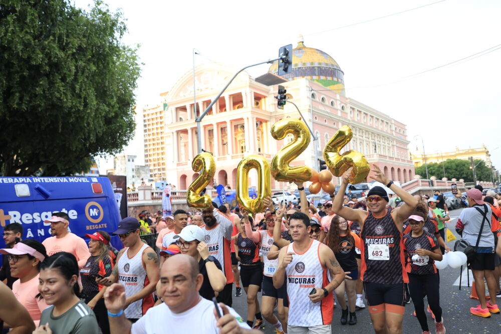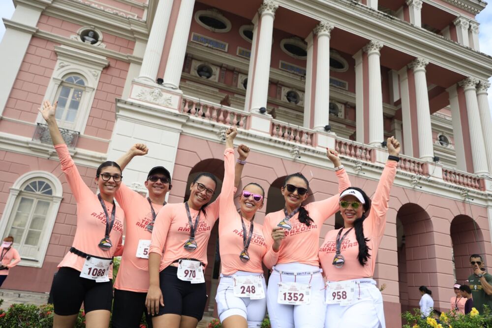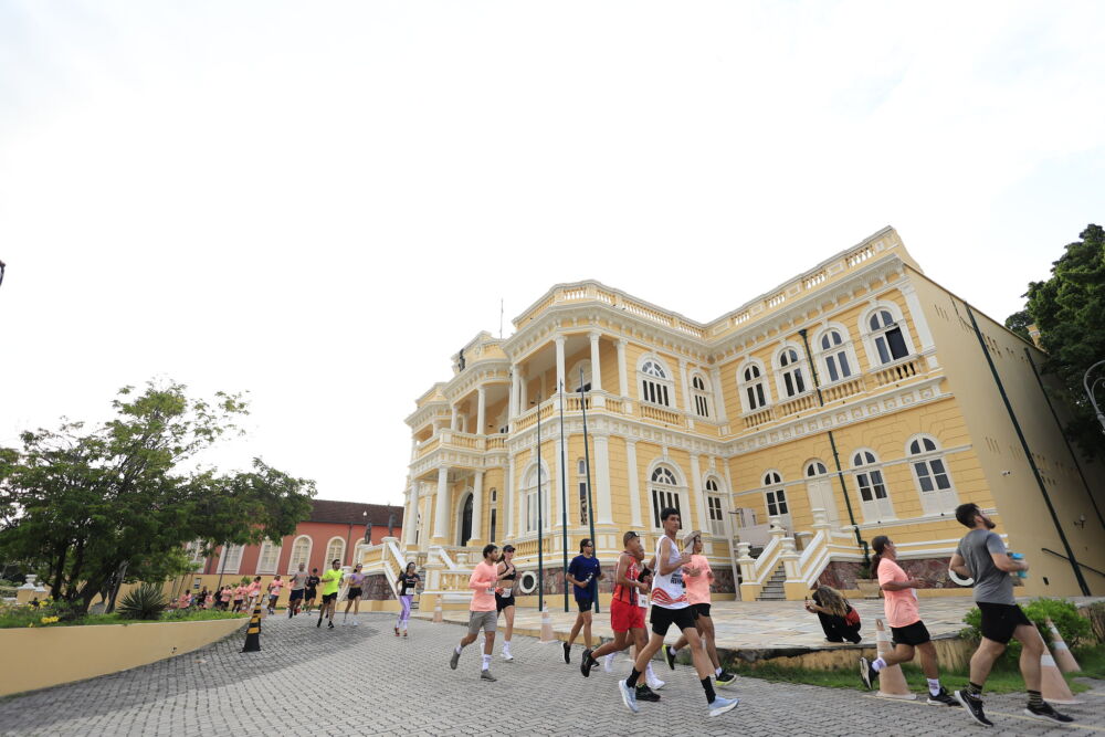 A largada e a chegada ocorreram em frente ao Teatro Amazonas, onde a energia dos participantes se misturou à emoção de homenagear o teatro centenário.