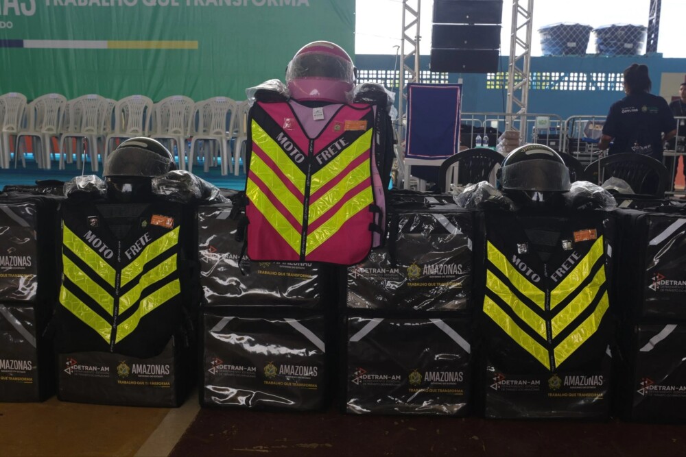 Em ação realizada no município no último sábado (07/02), o Departamento Estadual de Trânsito do Amazonas (Detran-AM) entregou 25 kits de motofretista. Os equipamentos incluem coletes de identificação respirável, capacetes, bags térmicas para entregas, joelheiras, cotoveleiras e antenas “corta-pipa”, visando aumentar a segurança dos profissionais.