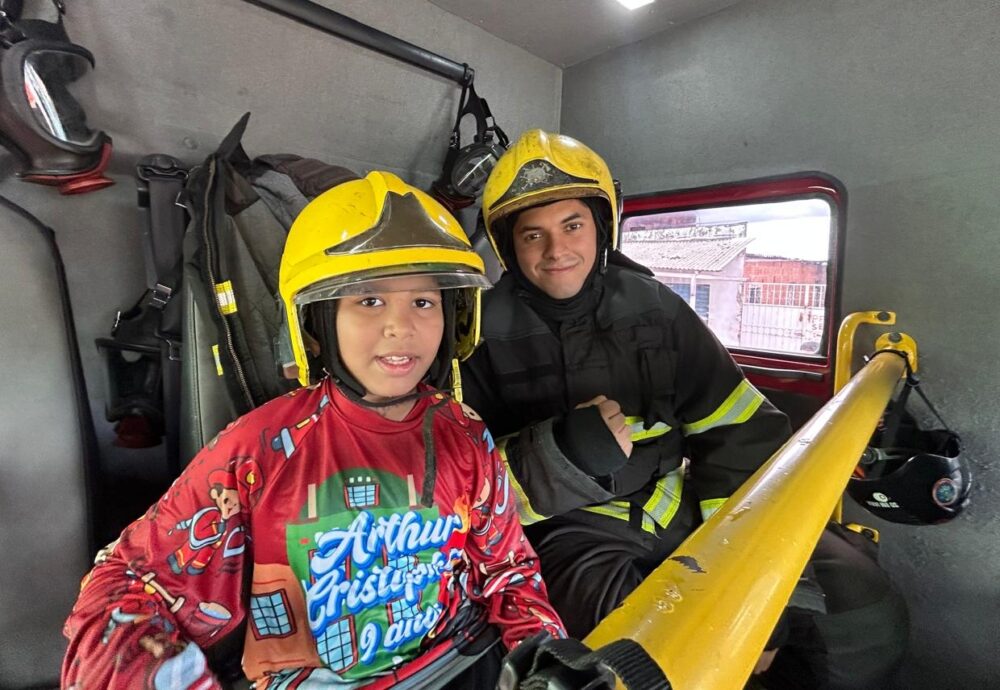 “É muito gratificante poder proporcionar isso a ele. Graças a Deus a gente conseguiu realizar o sonho do Arthur que era entrar num carro de bombeiro”, acrescentou.