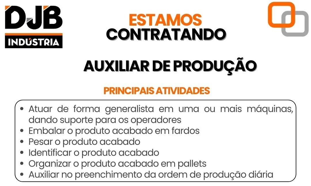 Vagas disponíveis na DJB Indústria