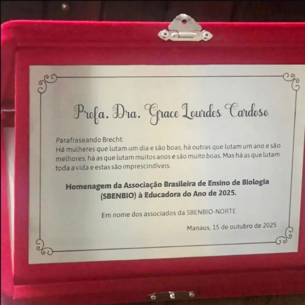 Todo esse trabalho trouxe para Grace o reconhecimento como o título de “Professora de Biologia do ano de 2025 do Norte do país”, honraria entregue a ela durante a realização do 4º Encontro Regional de Ensino de Biologia (Erebio Norte), promovido pela Associação Brasileira de Ensino de Biologia, promovida em outubro. Mas para além dos títulos, a professora também enxerga o reconhecimento no dia a dia da sala de aula, trabalhando a educação com paixão, contribuindo para que os estudantes possam conhecer o poder transformador e se apaixonar pelo ensino.