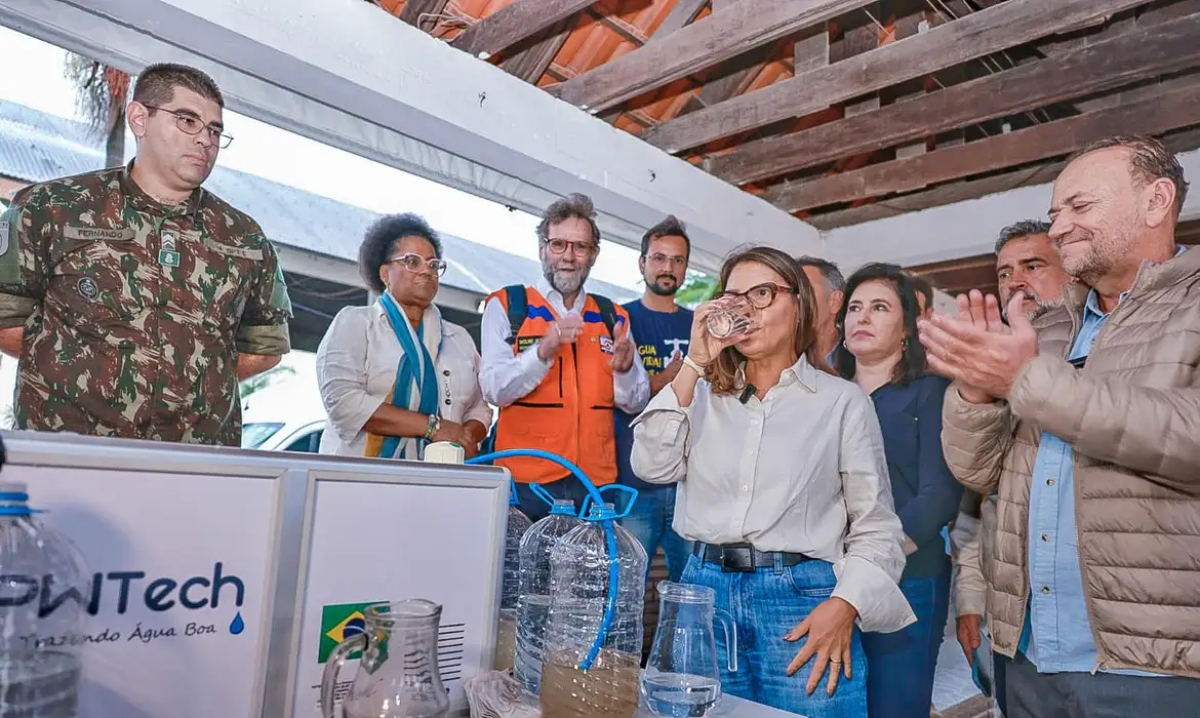Segundo o ministro da Secretaria de Comunicação Social da Presidência (Secom), Paulo Pimenta, um dos coordenadores da resposta do governo federal às enchentes no estado, os purificadores foram comprados pelo influenciador digital Felipe Neto, a partir de doações arrecadadas pela internet, com apoio da primeira-dama Janja da Silva. Os equipamentos foram fabricados pela empresa PW Tech, de São Paulo.