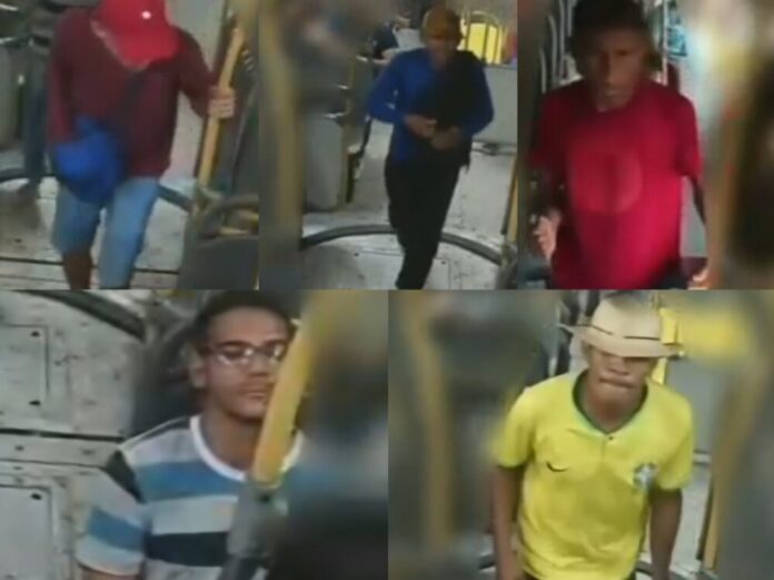 A Polícia Civil do Amazonas (PC-AM), por meio do Núcleo de Repressão a Roubos no Transporte Coletivo e Rotas do Polo Industrial de Manaus (Nurcc), divulga as imagens de cinco homens suspeitos de roubar dois ônibus do transporte coletivo da linha 560, nos dias 5 e 17 de novembro deste ano, na avenida Margarita, bairro Cidade de Deus, zona Norte de Manaus.