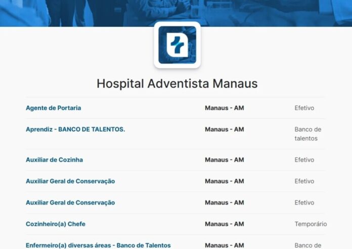 O Hospital Adventista de Manaus está com novas oportunidades de emprego abertas para profissionais de nível técnico e superior que desejam atuar na área da saúde ou em setores de apoio hospitalar.