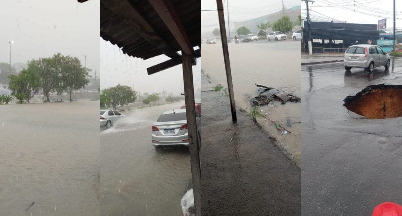 A rua Adalberto Vale, no bairro Betânia, foi completamente inundada durante a chuva. Comerciantes e moradores tiveram que suspender móveis e eletrodomésticos para evitar mais estragos.