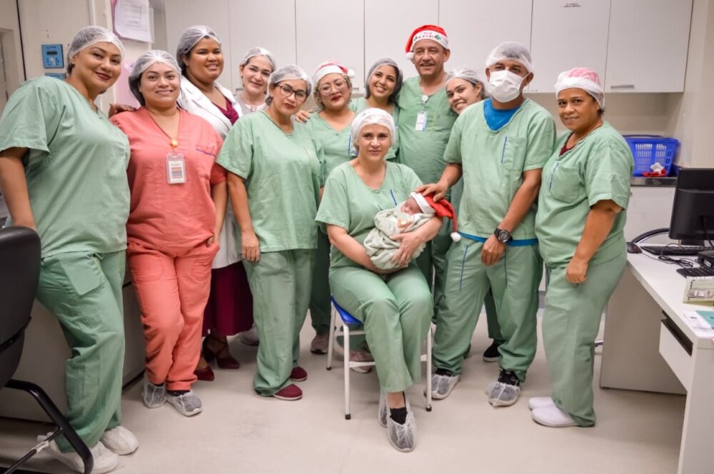 Na sexta-feira, ela e equipe estiveram na unidade para acompanhar o atendimento e também entregar kit enxoval para as mães de recém-nascidos, incluindo Max Gabriel, o primeiro bebê a nascer no Natal de 2025 em uma maternidade estadual.