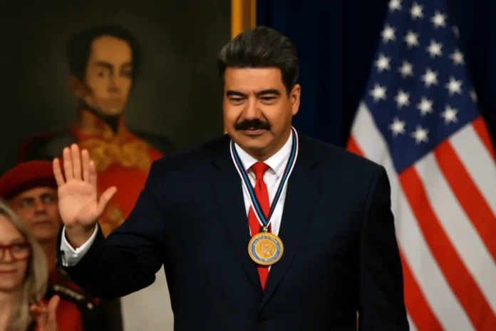 Em vídeo divulgado nesta sexta-feira, 19 de dezembro, Nicolás Maduro aparece recebendo uma medalha de condecoração de simpatizantes durante uma cerimônia da Sociedade Bolivariana da Venezuela. Segundo o material, a condecoração foi outorgada por unanimidade. O presidente venezuelano declara: "É um grande compromisso! A paz será meu porto, minha glória, meu desejo. Será sempre nossa vitória." A cerimônia ocorre uma semana após María Corina Machado, líder da oposição, ter recebido o Nobel da Paz na Noruega. Um trecho do vídeo ainda mostra uma participante exaltando Maduro como responsável pela paz da Venezuela, da região e do mundo inteiro."