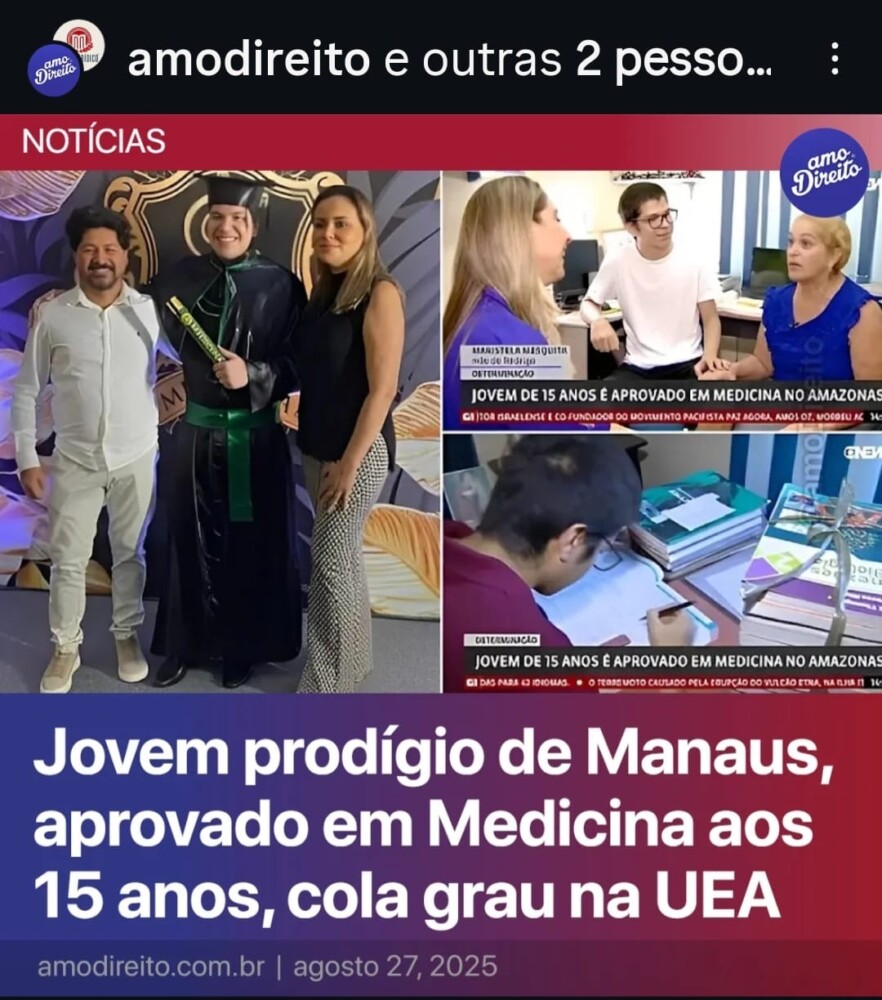 A conquista do 1º lugar em Medicina na UFAM por Marlo Feitosa e a trajetória de Rodrigo Otávio — aprovado em Medicina aos 15 anos e graduado em 2025 aos 21 anos — mostram que método, acompanhamento e estratégia reduzem barreiras que durante muito tempo pareceram intransponíveis.