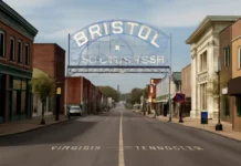 Bristol é uma cidade com cerca de 44 mil habitantes que fica na linha que separa a Virgínia do Tennessee. Ao caminhar pela rua...
