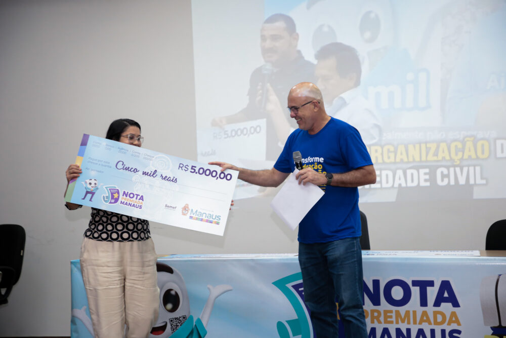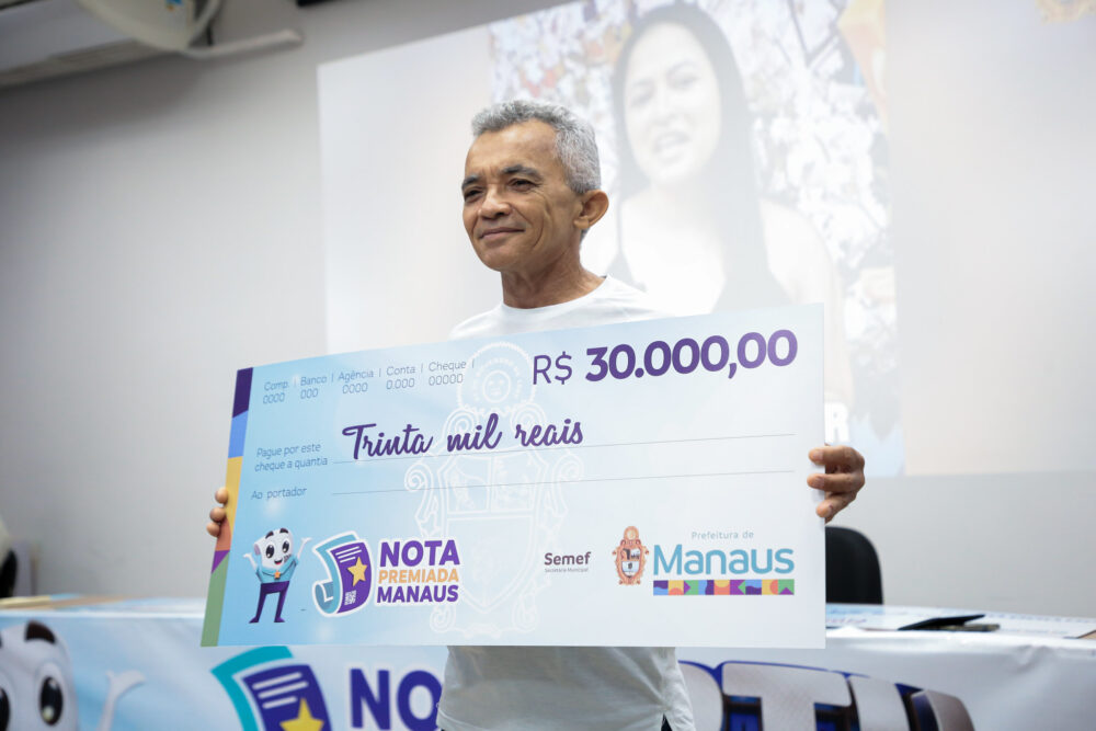 O coordenador do Grupo de Educação Fiscal do Município (GEFM), Edson Fernandes, conduziu a premiação que entregou cheques de R$ 5 mil a R$ 30 mil. “É muito gratificante estar aqui em mais uma entrega de prêmios da campanha Nota Premiada Manaus, tanto para as pessoas que colocaram seu CPF nas Notas Fiscais de Serviço, quanto às instituições sociais. Elas acreditaram nesse trabalho da Prefeitura de Manaus e hoje estão aqui recebendo esses prêmios”, disse.