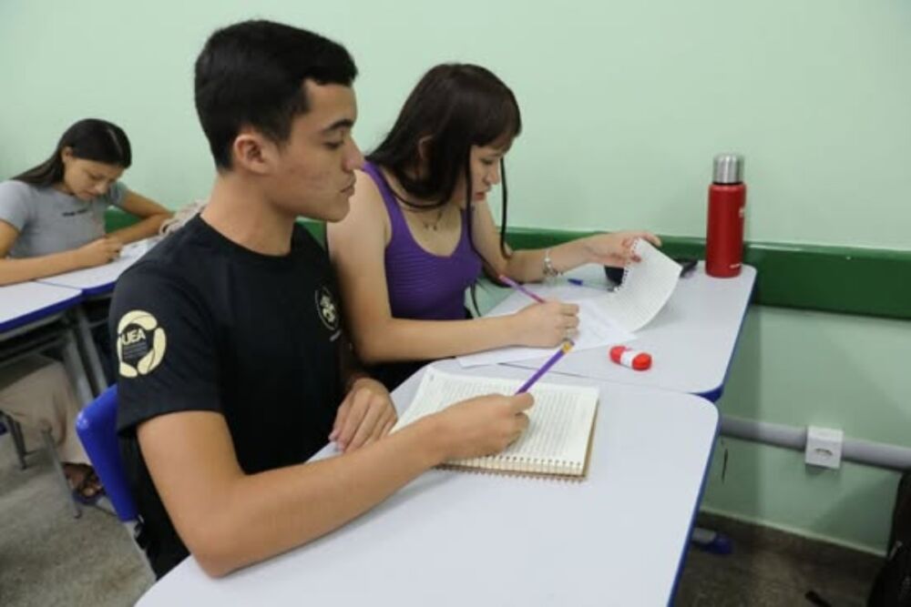Além das aulas presenciais, o curso oferece: plantão semanal on-line, material didático exclusivo, orientação psicoeducacional com equipe multidisciplinar, 3 simulados com feedback e personalizado com ferramenta de IA, laboratório de redação, estacionamento grátis, acesso às instalações da biblioteca setorial ENS e permissão para uso do serviço do Restaurante Universitário (RU) da ENS/UEA.