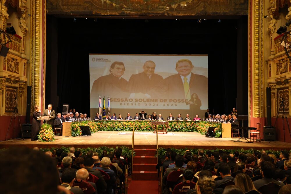 A conselheira-presidente do Tribunal de Contas do Amazonas (TCE-AM), Yara Amazônia Lins, integrou a mesa de honra durante a cerimônia de posse do desembargador Jomar Ricardo Saunders Fernandes como novo presidente do Tribunal de Justiça do Amazonas (TJAM) para o biênio 2025/2026. A solenidade foi realizada na noite desta quinta-feira (9) no Teatro Amazonas.