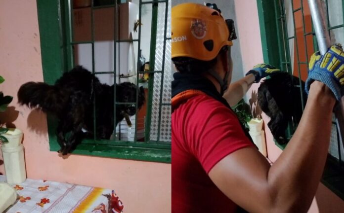 Por volta das quatro da madrugada desta sexta-feira (9), o Corpo de Bombeiros Militar do Amazonas (CBMAM) foi acionado para resgatar uma cadela que ficou presa na grade da janela da residência de sua tutora, no bairro Monte das Oliveiras, zona Norte de Manaus.