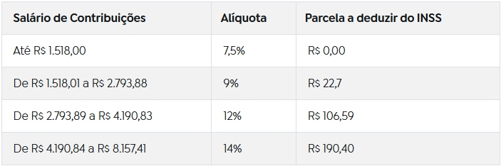• Faixas da tabela de contribuição ao INSS: todas as faixas subiram para os seguintes valores: