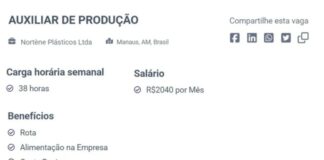 Vaga de auxiliar de produção na Inovar Consultoria RH em Manaus
